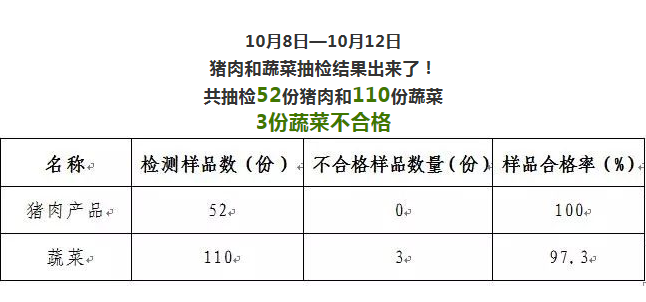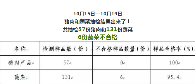豬肉和蔬菜抽檢結(jié)果出來了!