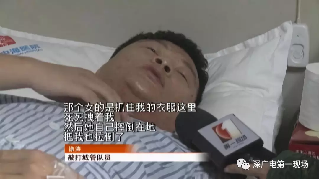 一位在市場所在小區(qū)的居民,在樓上遠(yuǎn)遠(yuǎn)地拍下了事發(fā)的全過程。被踢城管隊員在倒地前,光頭男子和3名分別身穿粉紅、黃和黑色衣服的女子,對他又扯又打,手腳并用。