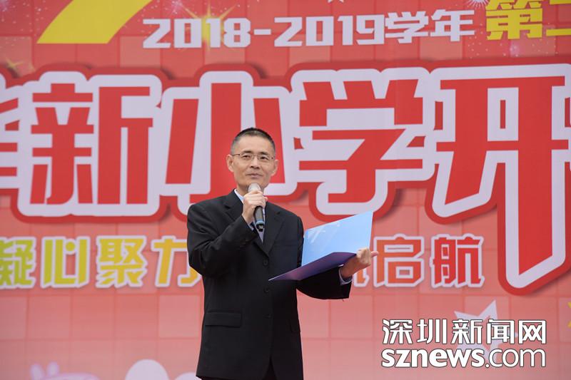 華新小學(xué)校長張偉在開學(xué)典禮上講話。深圳新聞網(wǎng) 曹園芳/攝
