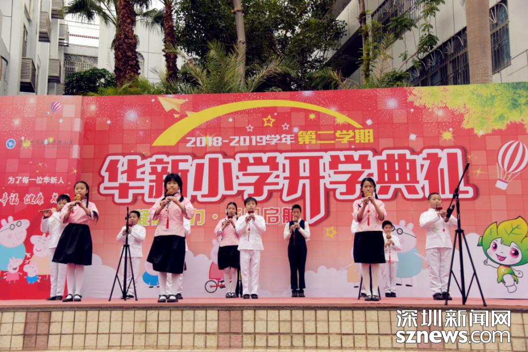 “四點半”社團(tuán)是作為學(xué)生學(xué)校學(xué)習(xí)生活的一部分,開學(xué)典禮上,華新小學(xué)不同社團(tuán)的老師們和學(xué)子們表演了精彩的節(jié)目。高年級的學(xué)生穿著“小豬佩奇”一家的卡通服登臺送上新年祝福,尤克里里社團(tuán)的老師帶來的《Lemon Tree》把全場帶進(jìn)了快樂的世界里,師生們歡快地鼓起掌來,優(yōu)美的歌聲環(huán)繞著華新小學(xué),也環(huán)繞著筆架山。
