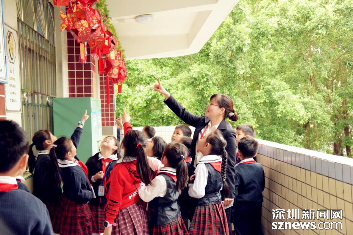 同學(xué)們自己制作的燈籠懸掛在校園里。深圳新聞網(wǎng) 曹園芳/攝