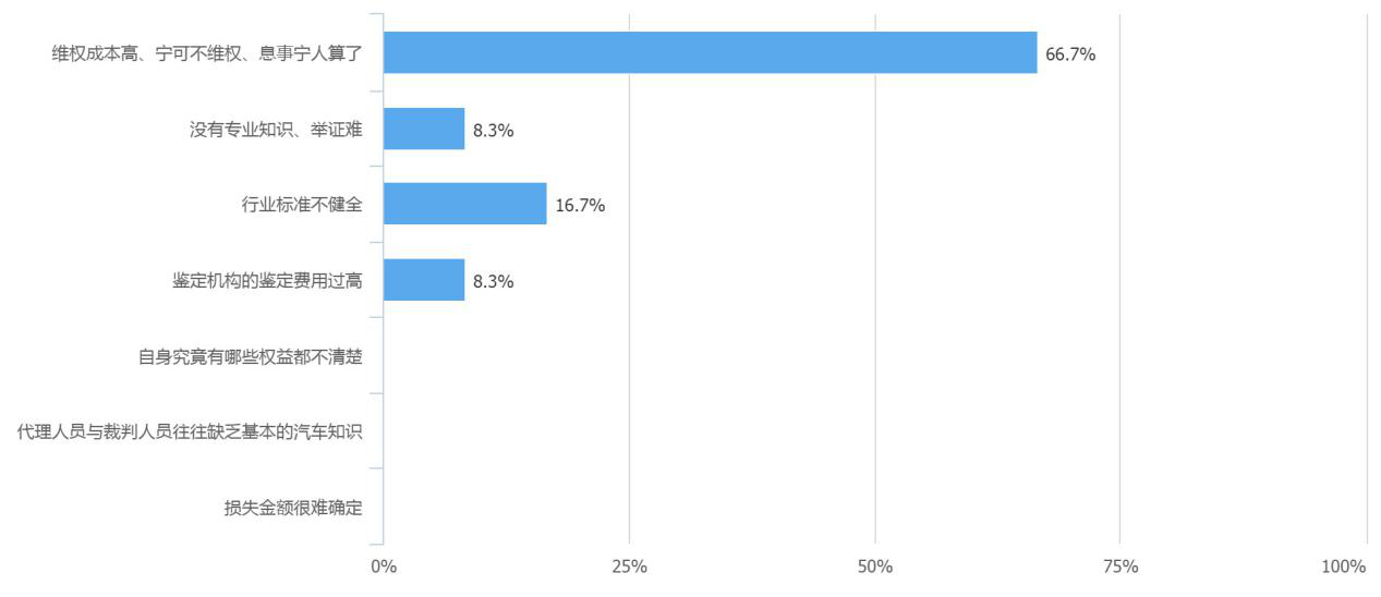 維權(quán)成本高、寧可不維權(quán)、息事寧人成為影響汽車(chē)法律維權(quán)的主要因素。