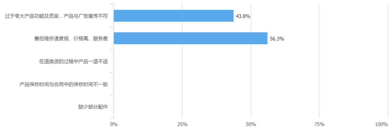 用戶最關(guān)心的問(wèn)題,售后維修依然是重災(zāi)區(qū),56.3%的網(wǎng)上消費(fèi)者更關(guān)心售后維修問(wèn)題,維修速度慢、價(jià)格高、服務(wù)差是網(wǎng)上消費(fèi)者對(duì)數(shù)碼家電售后領(lǐng)域普遍的認(rèn)知。