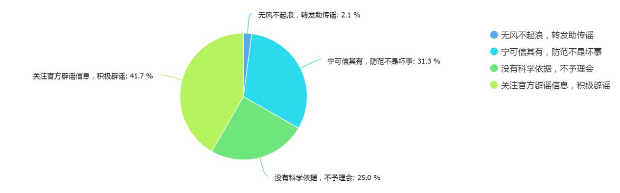 “舌尖上的謠言”長(zhǎng)期在朋友圈里“屢辟屢傳”,其中一個(gè)重要原因是因?yàn)橄M(fèi)者有著極大的安全焦慮。食品謠言的存在,不僅說(shuō)明了消費(fèi)者在相關(guān)科學(xué)知識(shí)方面的空白,也反映出社會(huì)對(duì)食品安全的擔(dān)憂。不過(guò)經(jīng)過(guò)相關(guān)部門(mén)和媒體的大力宣傳,已經(jīng)有41.7%的受訪者會(huì)主動(dòng)關(guān)注官方辟謠信息,積極辟謠。