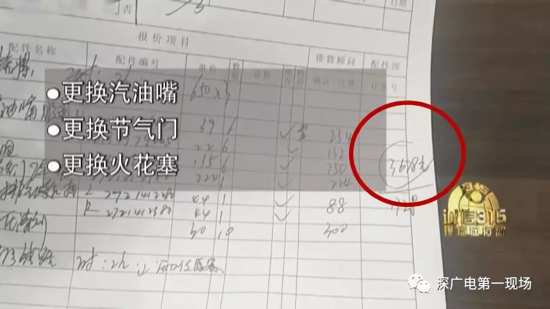 而這個(gè)小故障在經(jīng)過(guò)大興奔馳羅湖店的檢查后,卻被開出3600多元的維修費(fèi),包括更換噴油嘴膠圈、節(jié)氣門墊等部件,以及工時(shí)費(fèi)。