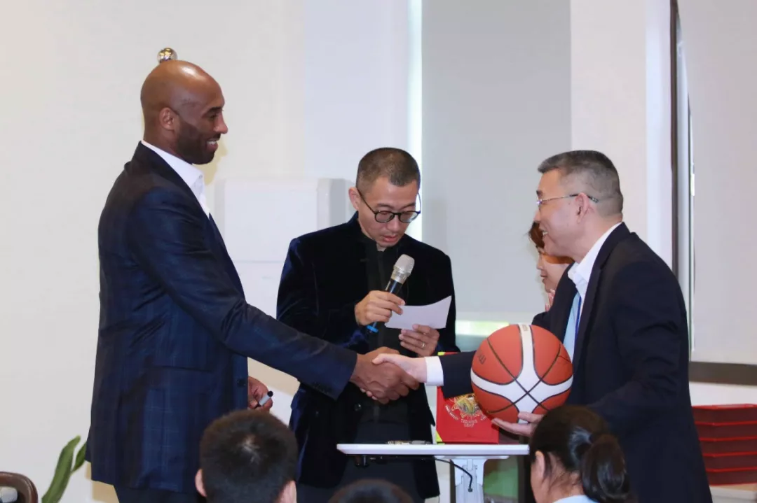 在課室里,南山區(qū)與科比互贈(zèng)禮物表達(dá)情誼和祝福:
