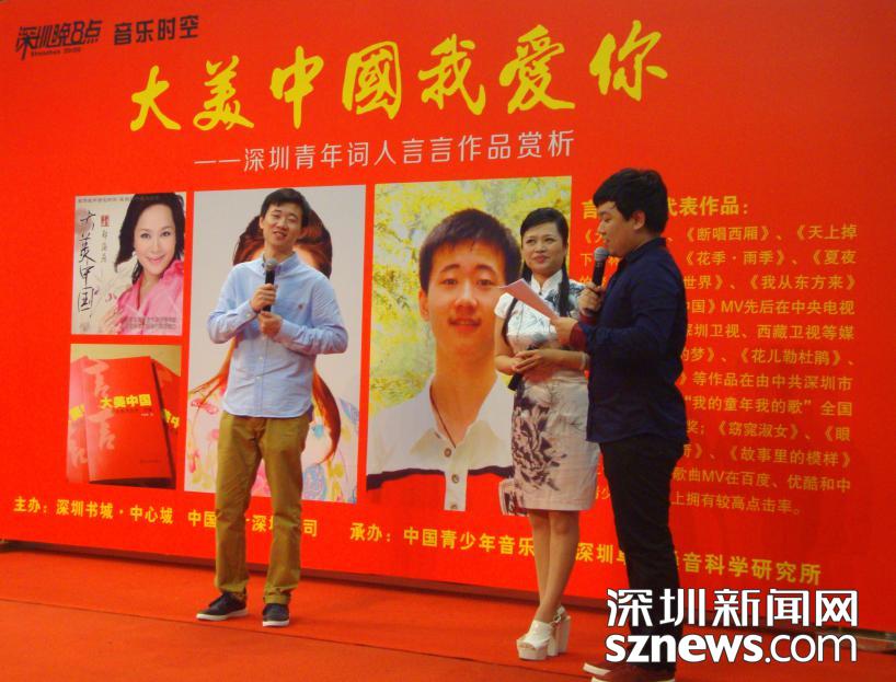 這堂富有親和力、針對(duì)性的思政課主講嘉賓是位深圳籍詞作家、青年詩(shī)人言言(李楚鶴),90后的他是全國(guó)首張青少年原創(chuàng)歌曲系列唱片――“中國(guó)少年之聲”的特約詞作家,自打在深圳羅湖上初中開(kāi)始至今,其歌詞作品受到包括王佑貴、何沐陽(yáng)、尹良等在內(nèi)的國(guó)內(nèi)著名音樂(lè)家的親睞,隨之,言言與多位知名藝術(shù)家合作,創(chuàng)作出近百首原創(chuàng)歌曲。其代表作《大美中國(guó)》、《中國(guó)芬芳》、《我從東方來(lái)》、《聲震世界》、《花季雨季》、《綠水青山》等歌曲先后在中央電視臺(tái)、深圳衛(wèi)視等媒體累計(jì)播出逾百次。許多原創(chuàng)歌曲在校園里被廣大青少年追風(fēng)傳唱,他的個(gè)人詩(shī)詞歌詞集《大美中國(guó)――言言詩(shī)詞集》也已面向全國(guó)出版發(fā)行。