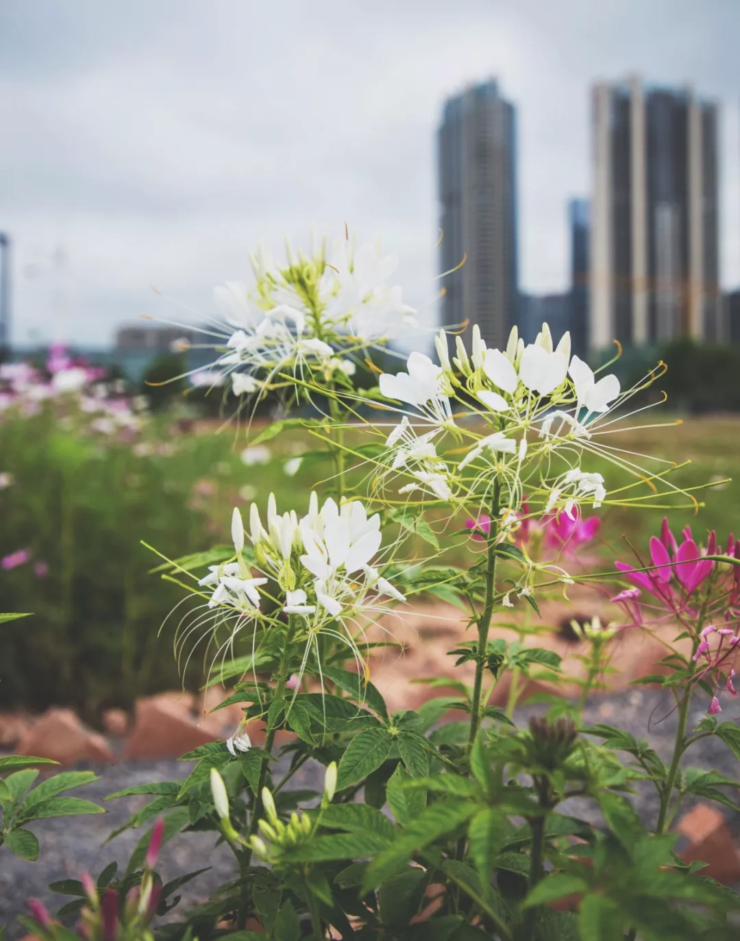 乍一看是不是有點(diǎn)像彼岸花?不過(guò)它倆卻算不上什么親戚。醉蝶花盛開(kāi)時(shí),總狀花序形成一個(gè)豐滿的花球,朵朵小花猶如翩翩起舞的蝴蝶,靈動(dòng)迷人。