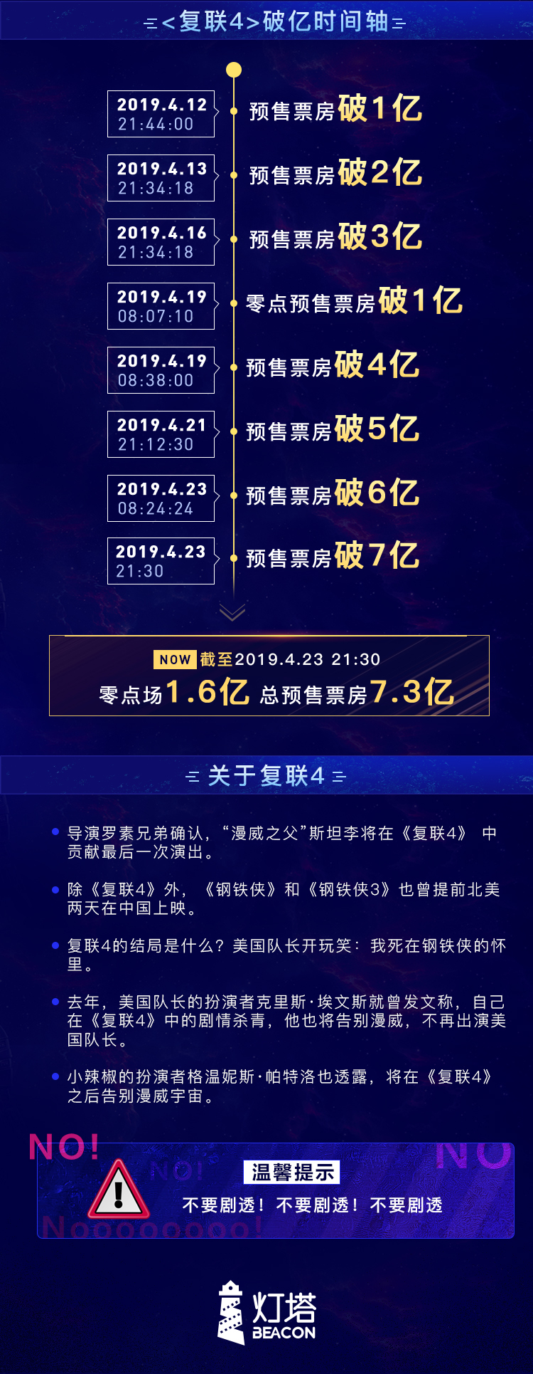 深圳新聞網(wǎng)4月24日訊(記者 陳婕)相信你的朋友圈已經(jīng)被“復(fù)聯(lián)4”占據(jù)了領(lǐng)地,而小記認(rèn)識的英雄還湊不齊一桌麻將。截至24日00點,《復(fù)仇者聯(lián)盟4》預(yù)售已破7億!超《美國隊長2》總票房,在《復(fù)聯(lián)4》的預(yù)售峰值期,淘票票預(yù)售市場占比過半。