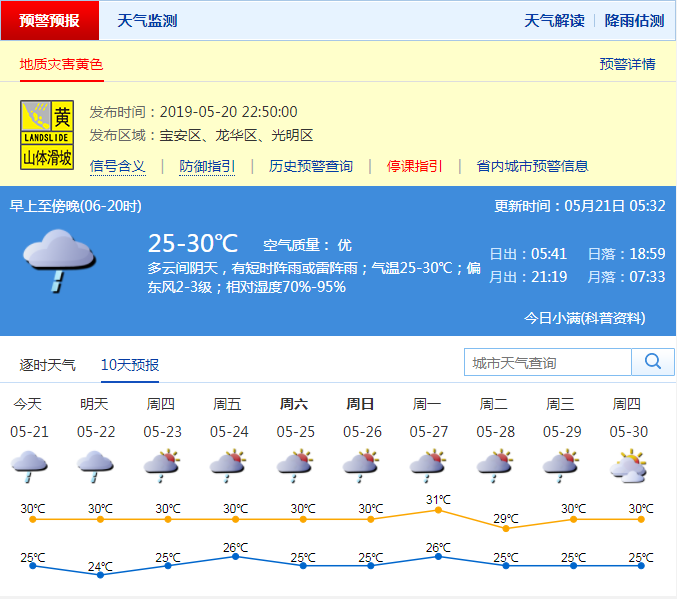 深圳市氣象臺自5月20日19時50分起,先后在全市陸地和海區(qū)發(fā)布雷電和暴雨黃色預(yù)警,并在光明、寶安和龍華發(fā)布暴雨橙色和紅色分區(qū)預(yù)警,這是今年首次發(fā)布暴雨紅色預(yù)警。本次降雨具有短時雨量大,持續(xù)時間短,雷暴密集等特點(diǎn),5月20日19:00-5月21日00:00全市共記錄到772次雷電。