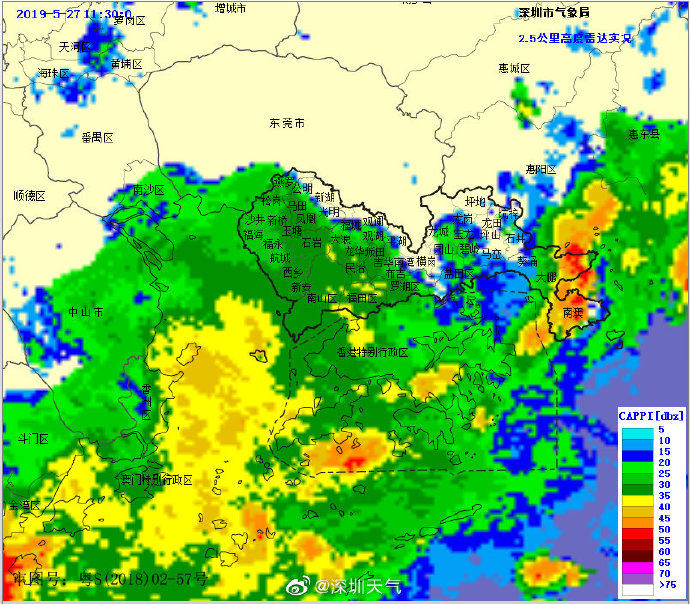 強(qiáng)降雨將趨于結(jié)束,深圳市氣象臺于2019年05月27日12時(shí)30分在全市取消暴雨黃色預(yù)警,預(yù)計(jì)今天白天仍有雷陣雨,部分時(shí)間雨勢較大,市民仍需注意遠(yuǎn)離河道和危險(xiǎn)邊坡等