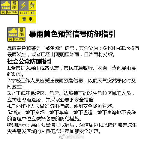 【全市暴雨黃色和雷電預(yù)警信號仍在生效】