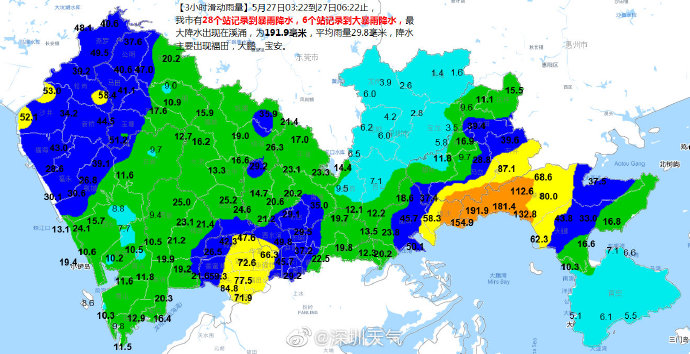 據(jù)悉,自27日起深圳進(jìn)入新一輪龍舟水降水過程。預(yù)計(jì)28-29日受冷空氣影響,有大雨到暴雨,伴有短時(shí)強(qiáng)降雨和6-8級雷雨大風(fēng)。本次強(qiáng)降雨過程將以短時(shí)強(qiáng)降雨為主,具有突發(fā)性強(qiáng)、短時(shí)雨強(qiáng)大、局地性明顯的特點(diǎn)。