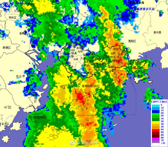 目前強(qiáng)降水中心已移至我市中部地區(qū),未來(lái)1-2小時(shí)內(nèi)東部地區(qū)將出現(xiàn)20-40毫米降水,深圳市氣象臺(tái)于2019年05月28日09時(shí)15分將暴雨黃色預(yù)警擴(kuò)展至全市,全市進(jìn)入暴雨戒備狀態(tài),請(qǐng)注意防范。