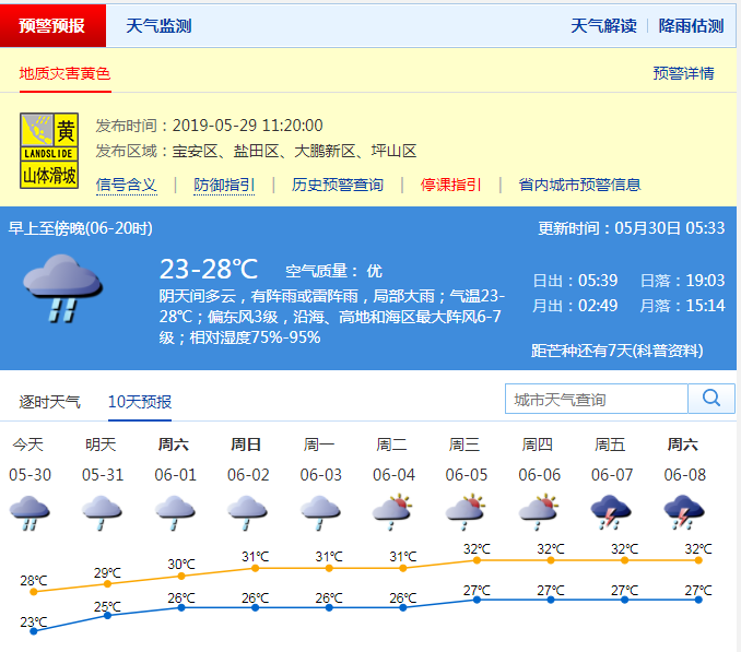 深圳新聞網(wǎng)5月30日訊 從上周開始,天氣預(yù)報就不斷提示:小雨、雷陣雨、暴雨。掐指一算,“龍舟水”又到了。深圳市氣象臺預(yù)計,31日-6月3日,多云間陰天,有中到大雨。深圳人,你們最近可能真的需要一艘船!