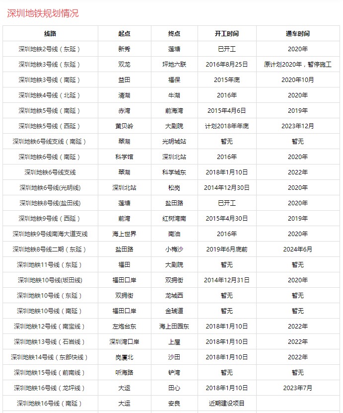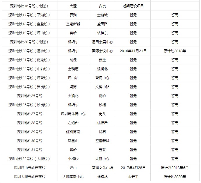 作為福利,送上深圳地鐵規(guī)劃情況表
