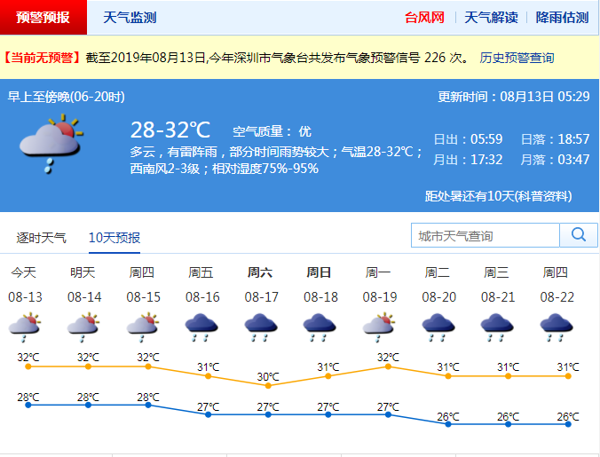 預(yù)計12日夜間至13日陰天間多云,有雷陣雨,局部仍有暴雨,并伴有強(qiáng)雷暴,氣溫28-32℃。14-15日降雨有所減弱,多云為主,午后有短時陣雨,天氣悶熱;16-18日降雨增強(qiáng),局部有暴雨。