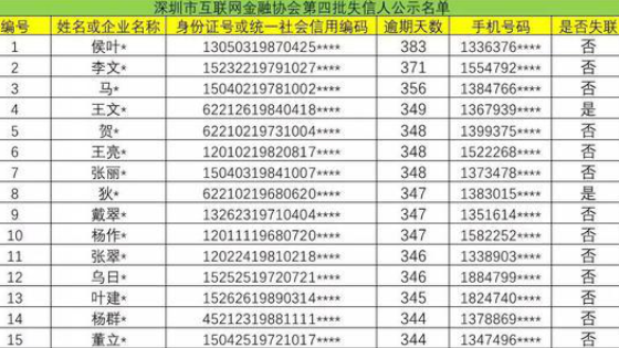 深圳第四批網(wǎng)貸失信人黑名單公布!有 ...