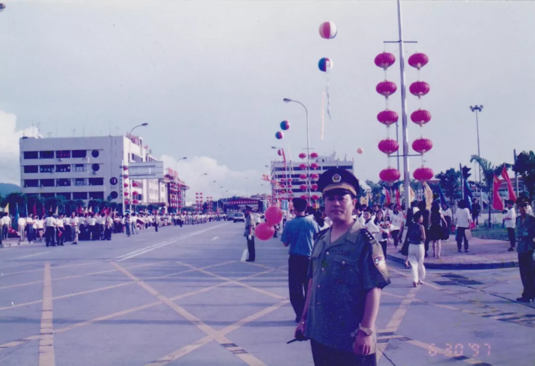 讓我們把時鐘撥回到1985年,那一年5月,皇崗口岸正式動工興建,飛檐斗拱,美輪美奐,陽光下,黃色的琉璃瓦屋頂格外搶眼,白墻紅柱,一座極具中國風的口岸一點點清晰起來。與之一并推進籌建的便是皇崗口岸派出所的前身“深圳市公安局皇崗口岸分局”。據(jù)當年皇崗口岸分局時任政委賴魯濱回憶,1986年,分局籌建組10余人只能擠在口岸附近的一個鐵皮茅棚內(nèi)開展各項籌備工作?!翱紤]到成立之初,日常的主要工作是維持通關(guān)貨柜車的交通秩序,所以組建時抽調(diào)的警員中,大部分來自交警隊伍。”賴魯濱說。通過緊張有序地籌備,皇崗口岸分局于1987年正式批復(fù)予以成立。