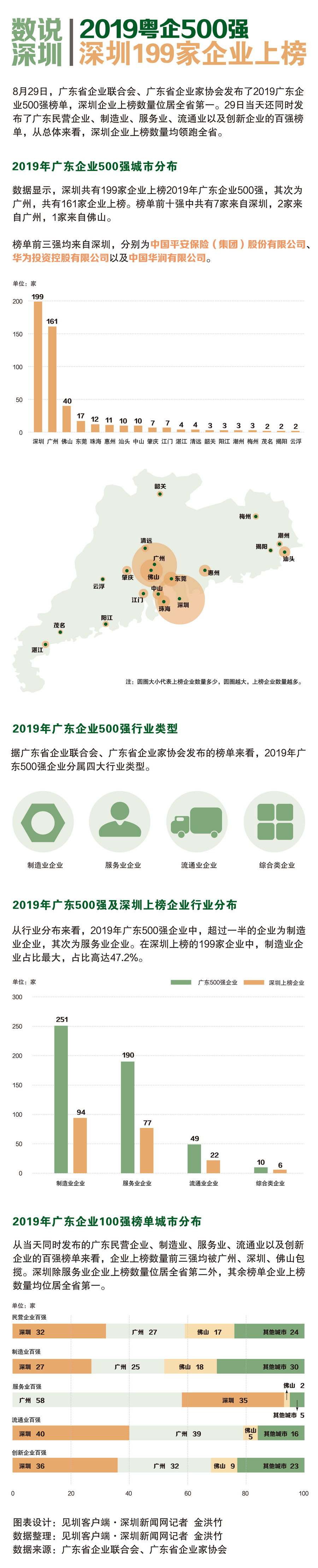 8月29日,廣東省企業(yè)聯(lián)合會、廣東省企業(yè)家協(xié)會發(fā)布2019廣東企業(yè)500強(qiáng)榜單,深圳企業(yè)上榜數(shù)量位居全省第一。