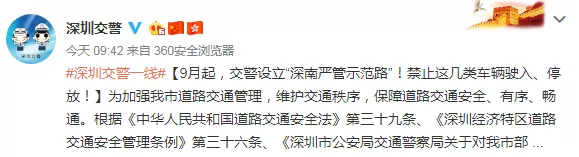 9月起,交警設立“深南嚴管示范路”!禁止這幾類車輛駛入、停放。