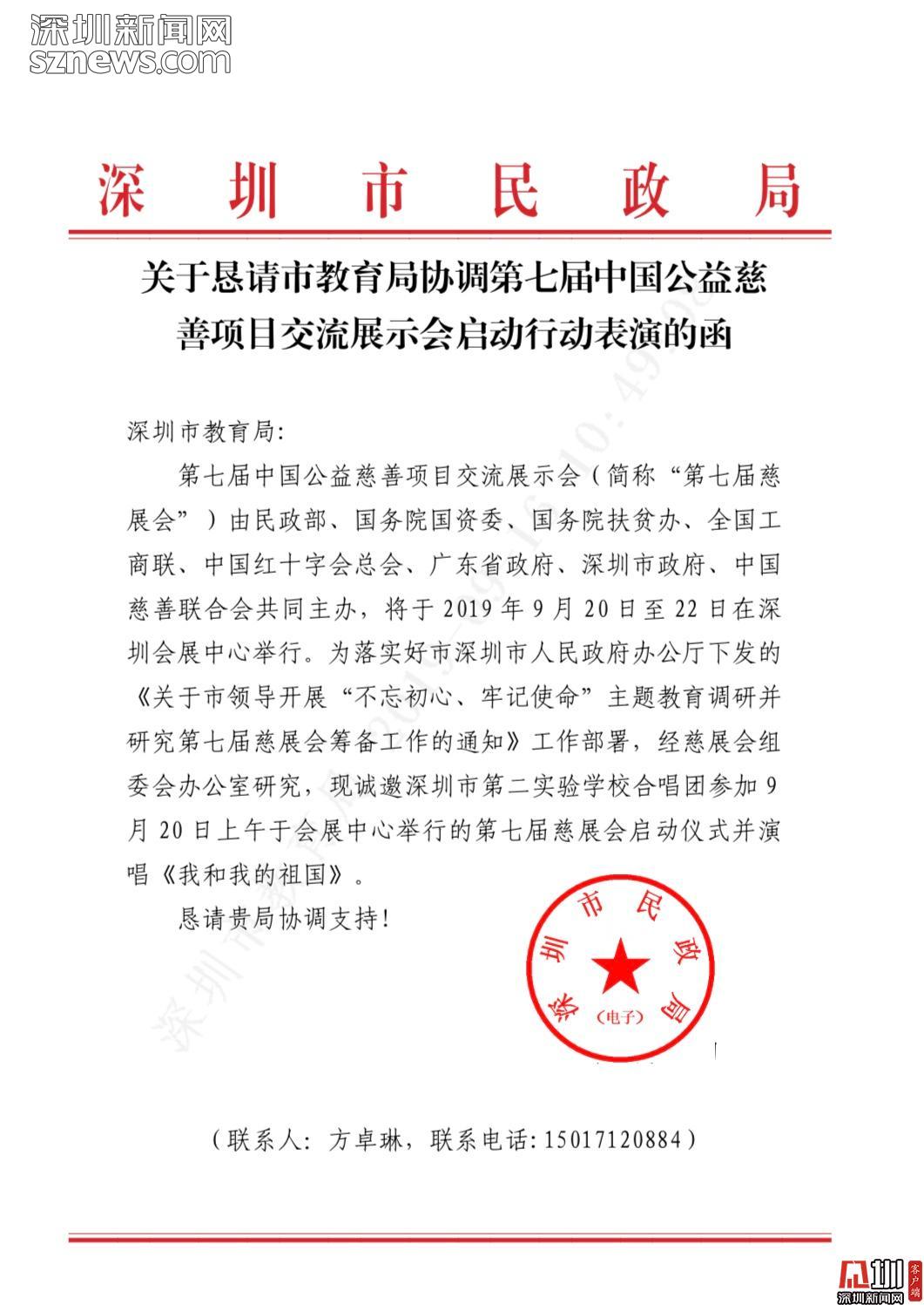 中國慈展會是國內唯一的國家級、綜合性、國際化的慈善行業(yè)盛會!由民政部、國務院國資委、國務院扶貧辦、全國工商聯、中國紅十字會總會、廣東省政府、深圳市政府、中國慈善聯合會等共同主辦。組委會通過深圳市教育局向二實下發(fā)了開幕助演的邀請函。學校相關負責人介紹,二實第一次參加如此高規(guī)格的演出,藝術中心高度重視此次演出任務,作好全面的溝通和協(xié)調協(xié)助,合唱團師生連日高強度排列,盡善盡美,全力以赴。