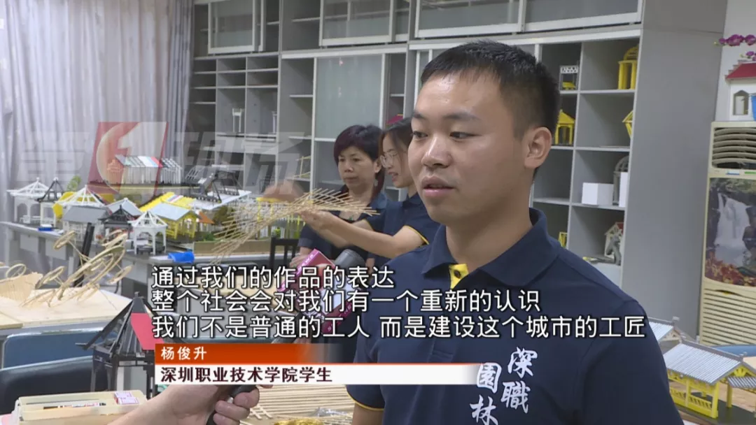 20號中午,在深圳職業(yè)技術(shù)學(xué)院的培訓(xùn)室,謝老師正在指導(dǎo)學(xué)生制作園林建筑的模型。這門技術(shù)不僅需要手巧,還要有藝術(shù)上的靈感和創(chuàng)意。