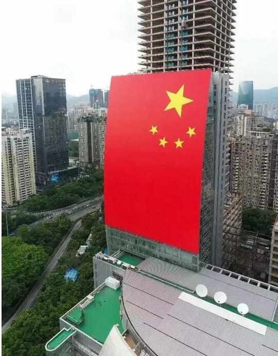 9月14日,一面巨幅國(guó)旗在深南大道上的廣電大廈樓宇立面上亮相,壯觀場(chǎng)面刷爆了深圳人的朋友圈。