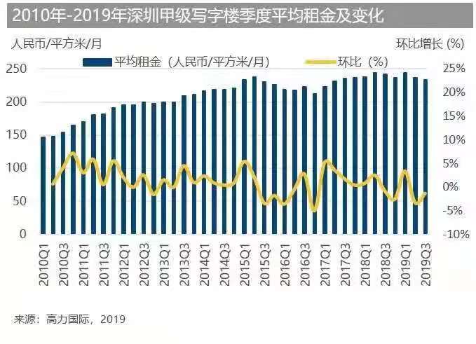 在第三季度,南山區(qū)成為唯一一個(gè)甲級(jí)寫字樓空置率下降的地區(qū),相比之下,羅湖區(qū)空置率卻出現(xiàn)了較大的上升,而福田和前海片區(qū)基本保持穩(wěn)定。這主要是由于原本在福田和羅湖的企業(yè)租戶仍舊在不斷將其辦公地點(diǎn)向城市西部的南山和前海遷移,以獲得相對(duì)較低的租金水平而產(chǎn)生的結(jié)果,因此前海的甲級(jí)寫字樓租金也錄得小幅上升。在政府鼓勵(lì)和優(yōu)惠政策背景下,南山區(qū)域內(nèi)科技板塊企業(yè)的持續(xù)較高增長率不斷推動(dòng)該區(qū)域的寫字樓需求,深圳甲級(jí)寫字樓重心西移也將繼續(xù)不斷深化。我們預(yù)計(jì)南山和前海到今年年底的市場(chǎng)需求將保持穩(wěn)定。