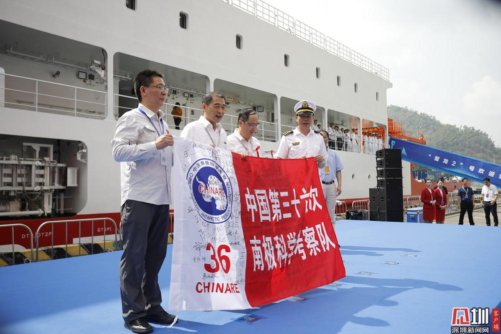 在活動現(xiàn)場,南極科考隊向深圳市人民政府贈送了比例1:100“雪龍2”號船船模紀(jì)念品,隨后,南極科考隊向招商局集團贈送全體科考隊員簽名的隊旗等。此外,黃敏副市長率隊登船參觀、慰問考察隊員,并與考察隊員親切交流座談。