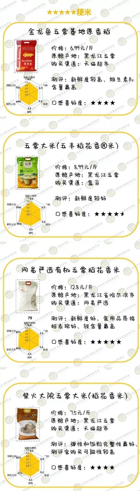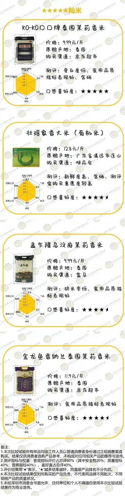 大米比較試驗(yàn)測評(píng)產(chǎn)品信息及評(píng)級(jí)表↓