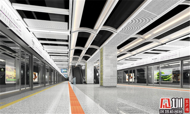 本線路標(biāo)準(zhǔn)站包括前灣站、荔林站、南油西站、南山書城站、深大南站、高新南站,標(biāo)準(zhǔn)站設(shè)計(jì)方案天花采用“一步一高,發(fā)展騰飛”的疊級(jí)造型,充分結(jié)合車站的綜合管線設(shè)計(jì),利用車站空間特點(diǎn),在空間上重點(diǎn)體現(xiàn)個(gè)性區(qū),保證空間的整體性,讓空間更為舒展、開闊。