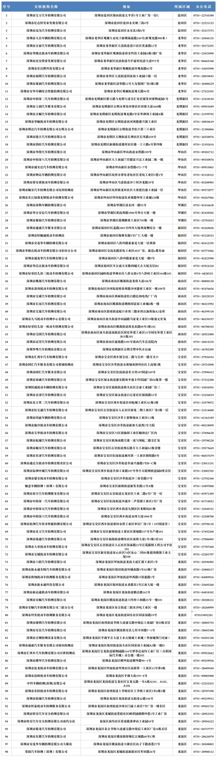 依據(jù)《機(jī)動(dòng)車登記規(guī)定》(公安部令124號(hào))第四十九條:機(jī)動(dòng)車所有人可以在機(jī)動(dòng)車檢驗(yàn)有效期滿前三個(gè)月內(nèi)向登記地車輛管理所申請(qǐng)檢驗(yàn)合格標(biāo)志。按照《中華人民共和國道路交通安全法實(shí)施條例》第十六條規(guī)定,機(jī)動(dòng)車應(yīng)當(dāng)從注冊(cè)登記之日起,按照下列期限進(jìn)行安全技術(shù)檢驗(yàn):(一)營(yíng)運(yùn)載客汽車5年以內(nèi)每年檢驗(yàn)1次;超過5年的,每6個(gè)月檢驗(yàn)1次;(二)載貨汽車和大型、中型非營(yíng)運(yùn)載客汽車10年以內(nèi)每年檢驗(yàn)1次;超過10年的,每6個(gè)月檢驗(yàn)1次;(三)摩托車4年以內(nèi)每2年檢驗(yàn)1次;超過4年的,每年檢驗(yàn)1次;(四)拖拉機(jī)和其他機(jī)動(dòng)車每年檢驗(yàn)1次。其中深圳市小車檢驗(yàn)站108家,大車檢驗(yàn)站98家。