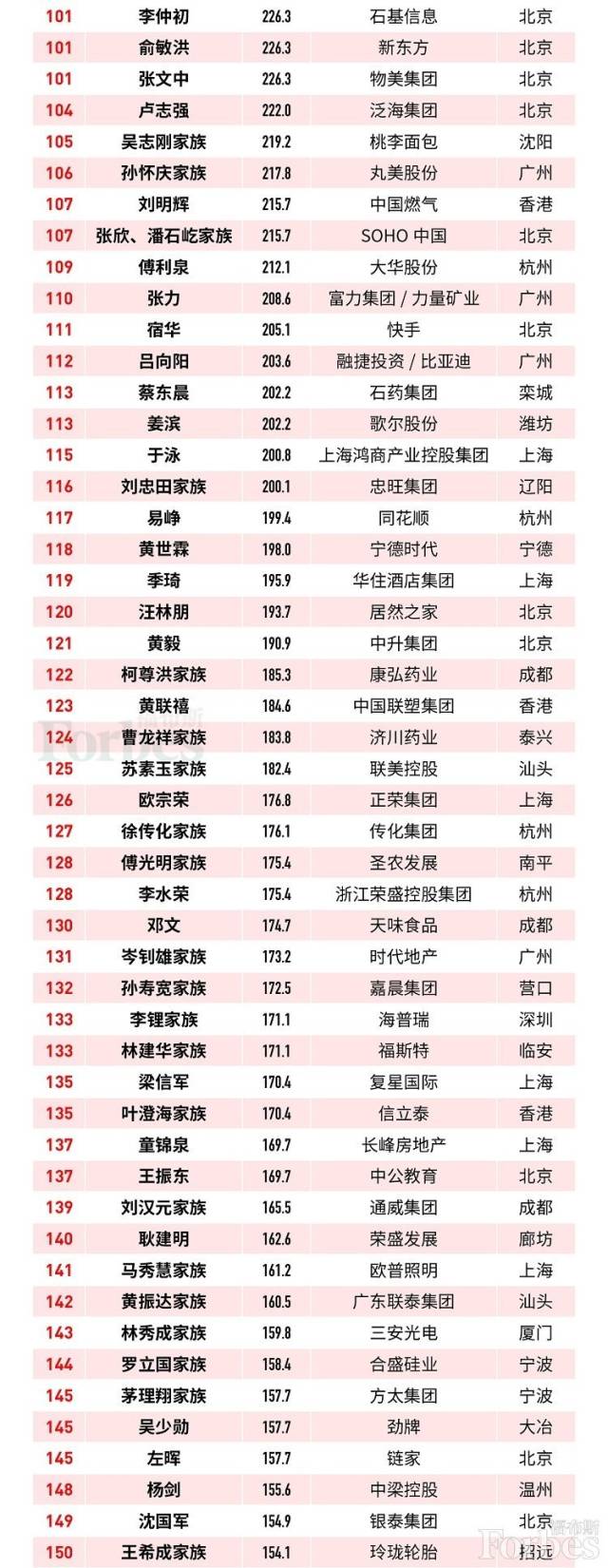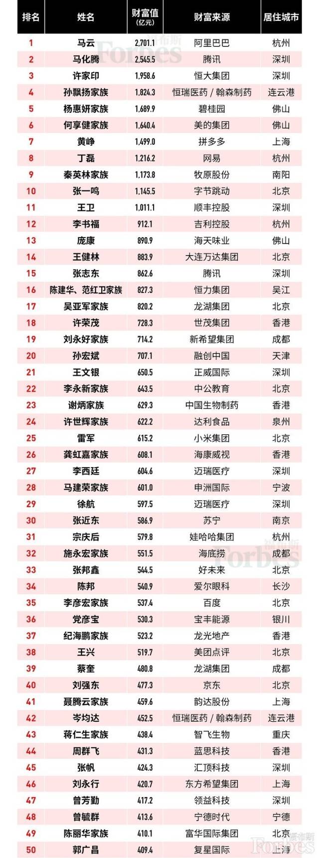 南方網(wǎng)2019年11月7日訊 11月7日,福布斯發(fā)布2019年度中國富豪榜,400位中國富豪登上這份頂級財富榜單。