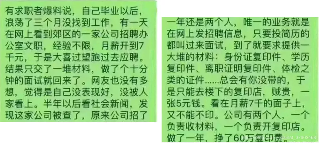 見圳客戶端·深圳新聞網(wǎng)2019年11月7日訊 有個(gè)帖子,最近廣為流傳,說是有騙子掛羊頭賣狗肉,打著公司招聘的幌子賺應(yīng)聘者的復(fù)印費(fèi),復(fù)印一張5塊錢,竟年入60萬!