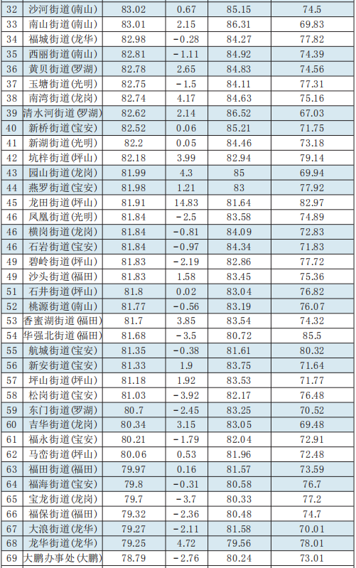 10月份,各區(qū)排名榜上,鹽田區(qū)“勝不驕”,繼續(xù)以優(yōu)異的成績保持第1,拿下“五連冠”,且在今年前10個月的測評中,鹽田區(qū)已經(jīng)8次取得第一名。羅湖區(qū)則“敗不餒”,在去年連續(xù)排名靠后甚至墊底的情況下,毫不氣餒,正視問題,補齊短板,理順機制,今年指數(shù)得分和排名穩(wěn)步提升,10月份更奪得榜眼,現(xiàn)場考察指數(shù)全市第1,轄區(qū)3個街道進入全市排名前6,5個進入前15。而龍華區(qū)和龍崗區(qū)則連續(xù)兩月排在倒數(shù)后三,龍崗區(qū)平湖街道連續(xù)3個月排在后5,應(yīng)對照測評情況找問題,出實招,加大整治提升工作力度。