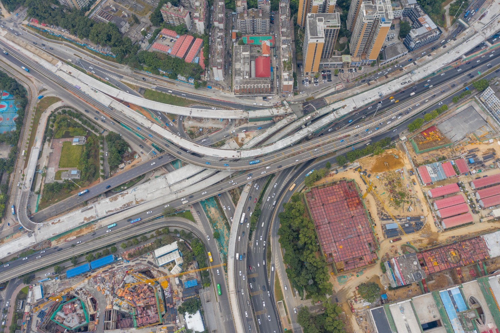 坂銀通道工程北環(huán)立交、泥崗立交橋梁主體工程施工現(xiàn)場