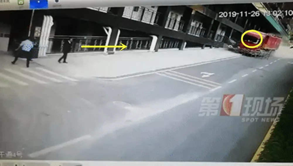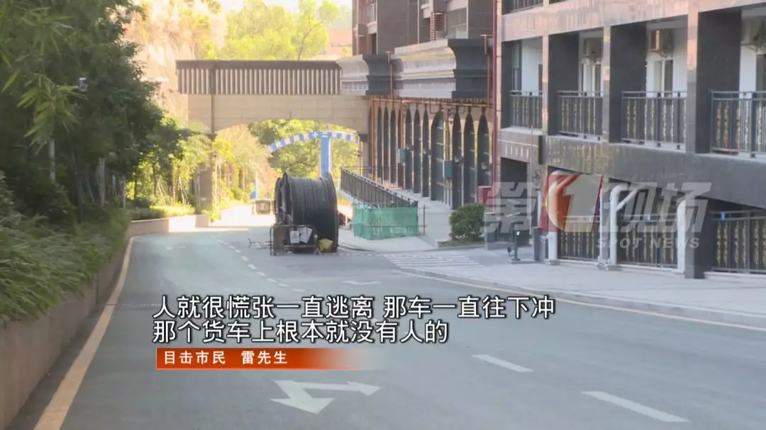 監(jiān)控中的這一幕發(fā)生在羅湖區(qū)的一個(gè)建筑工地旁,事發(fā)時(shí)間是11月26號下午的1點(diǎn)左右,有幾位市民正走在一條陡坡路上,他們聽到后面?zhèn)鱽黹_車的聲音,下意識(shí)地往路邊躲避。