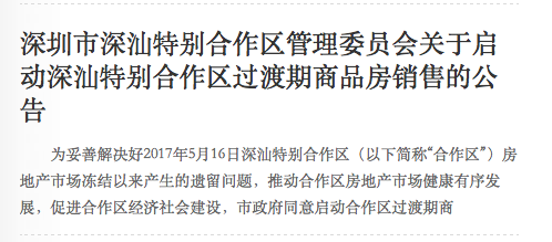 12月2日關(guān)于啟動深汕特別合作區(qū)過渡期商品房銷售的公告發(fā)布