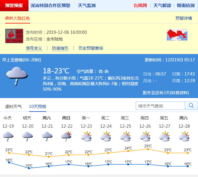 見圳客戶端·深圳新聞網(wǎng)2019年12月19日訊 深圳市氣象局預計18日夜間至21日冷空氣影響,轉陰天,有分散小雨,沿海、高地和海區(qū)陣風6-7級,氣溫下降,20日最低氣溫15℃;22日午后轉多云,23-25日可見陽光,氣溫回升。