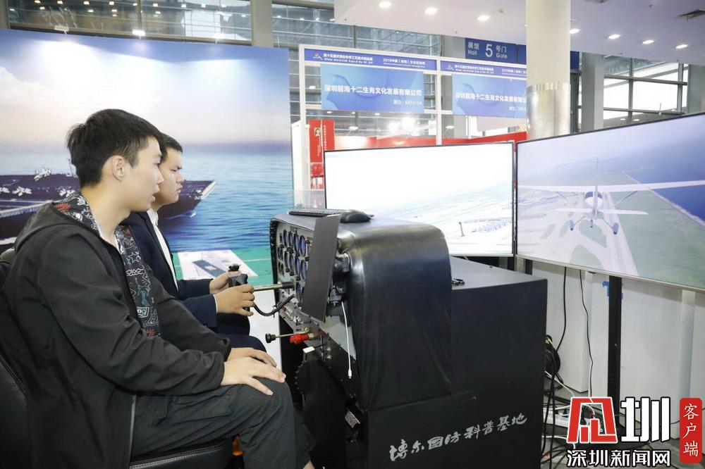 市民現(xiàn)場體驗?zāi)M飛行。