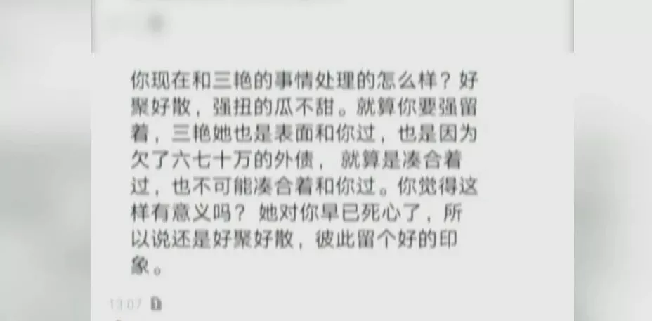 譚先生懷疑妻子被傳銷,苦心勸說將其勸回家,并替她償還30萬欠款后,妻子又“消失”了,還欠下六七十萬外債。此后,譚先生收到了陌生男子的短信。