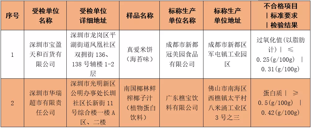 本次不合格食品具體信息如下