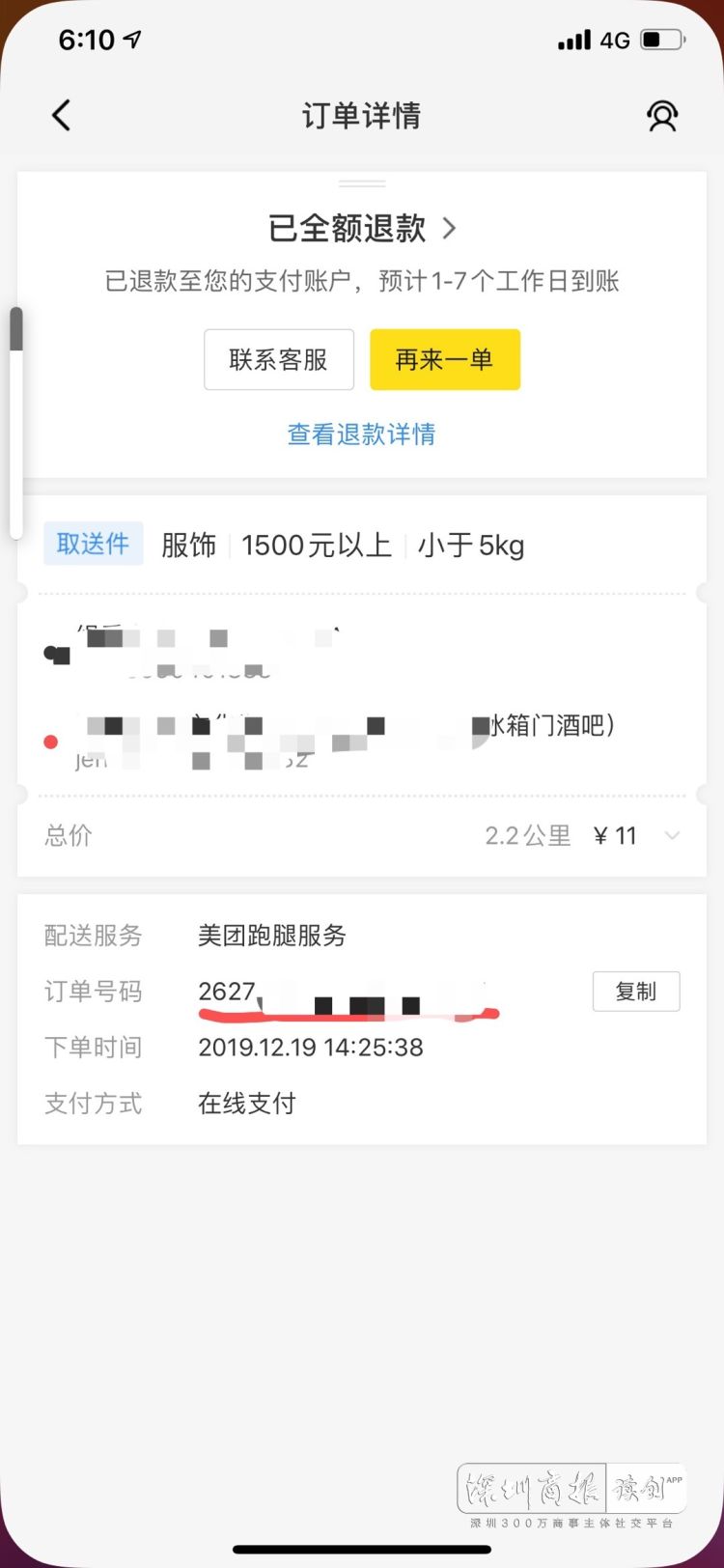 鄭小姐隨后查了監(jiān)控,發(fā)現(xiàn)跑腿小哥把貨物帶走了。這時(shí)她發(fā)現(xiàn),跑腿小哥已經(jīng)取消了該訂單,她立即撥打了美團(tuán)投訴熱線,美團(tuán)客服回應(yīng)可以半小時(shí)內(nèi)幫她極速解決,但直到當(dāng)天晚上十點(diǎn),鄭小姐仍沒有收到平臺(tái)的任何回復(fù),只將其11塊錢的跑腿費(fèi)退回。