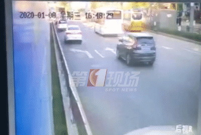《第一現(xiàn)場》記者立即趕到事發(fā)地點,看到有軌電車旁邊的2扇護欄被小車撞掉了,事發(fā)現(xiàn)場用警戒線圍著。監(jiān)控畫面顯示,今天下午16點48分,一輛黑色奔馳轎車在行駛過程中,突然騎上道路左邊的路沿石,撞倒了護欄之后,再撞到有軌電車。
