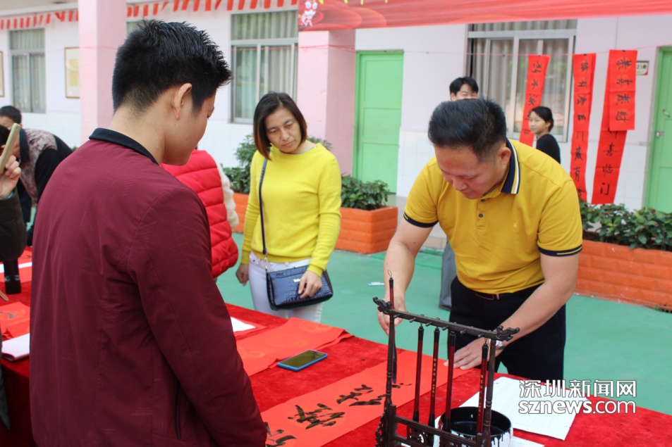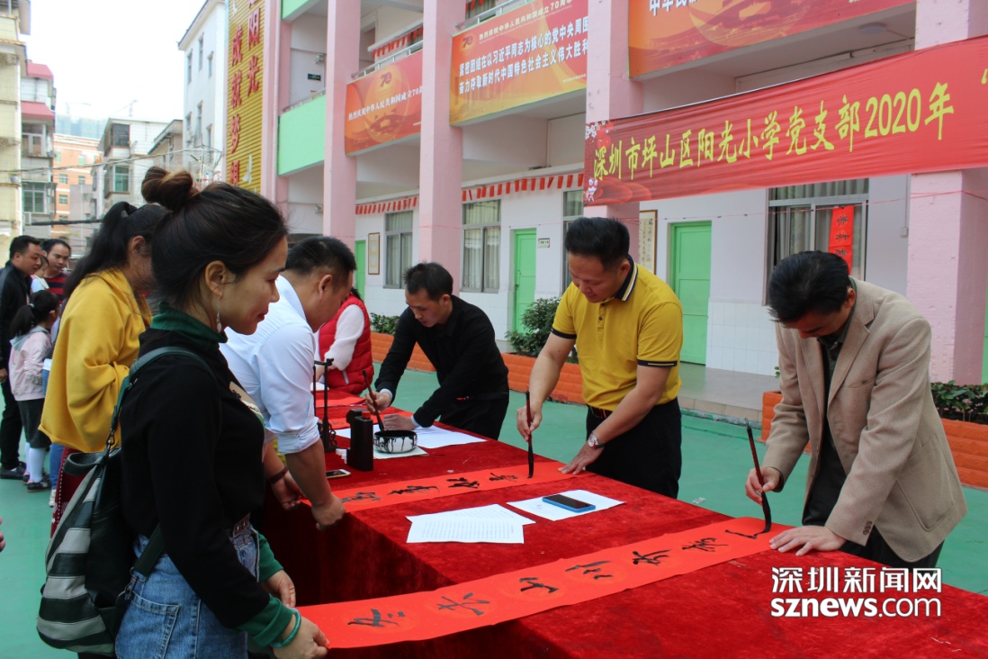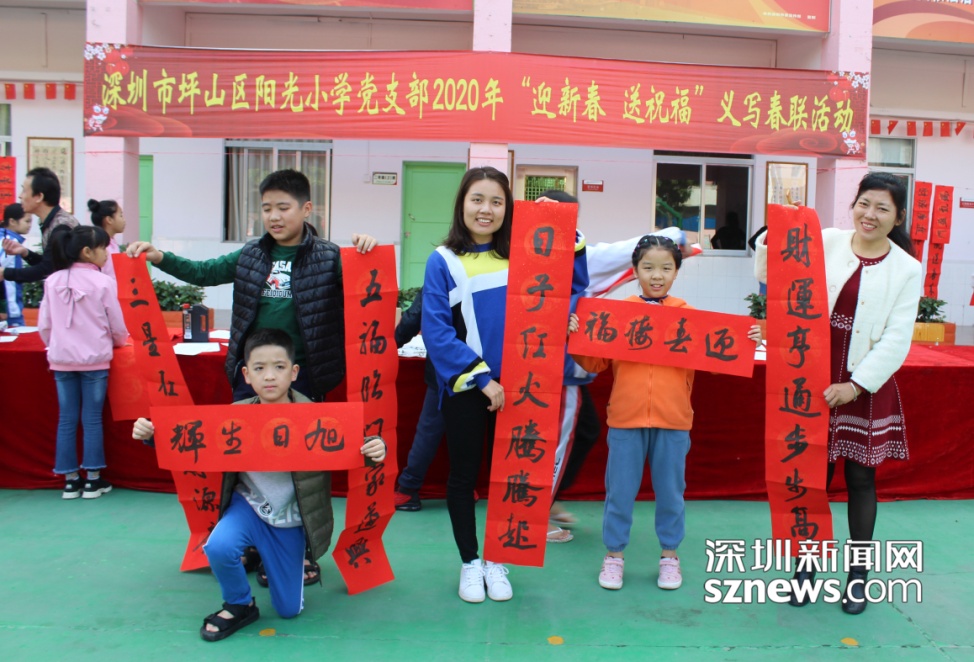 見圳客戶端、深圳新聞網(wǎng)2020年1月14日訊 (見圳客戶端、深圳新聞網(wǎng)記者 陳亞京 通訊 員 阮卓英)近日,深圳市坪山區(qū)陽光小學(xué)開展“迎新春 送祝?!绷x寫春聯(lián)活動(dòng),老師們現(xiàn)場(chǎng)揮毫?xí)鴮懸桓备痹⒁庑麓鹤85拇郝?lián),為社區(qū)居民、家長(zhǎng)奉上美好祝愿。當(dāng)天共計(jì)送出上千幅對(duì)聯(lián),活動(dòng)得到普遍好評(píng)。