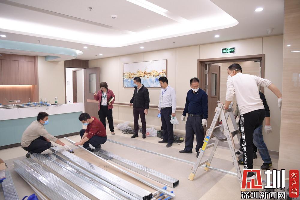 時間緊迫,說干就干。醫(yī)院臨時抽調(diào)100余人展開籌建工作。素來以作風(fēng)硬朗、特能吃苦、執(zhí)行力強(qiáng)著稱的南方醫(yī)科大學(xué)深圳醫(yī)院機(jī)關(guān)團(tuán)隊(duì)迎難而上,機(jī)關(guān)干部火速集結(jié)。醫(yī)務(wù)部劉建梅部長和運(yùn)行保障部張永勝部長春節(jié)一天沒有休息,此時又忙著協(xié)調(diào)禾正的籌建工作。護(hù)理部譚曉青部長剛回到老家不到24小時,便主動結(jié)束休假返回深圳。行政綜合部曾慶想部長、三甲辦公室副主任謝兆兵等同志也紛紛從全國各地連夜趕回。留深的醫(yī)護(hù)人員也紛紛加入籌建隊(duì)伍,20余名在深護(hù)士長全部前來助戰(zhàn)。