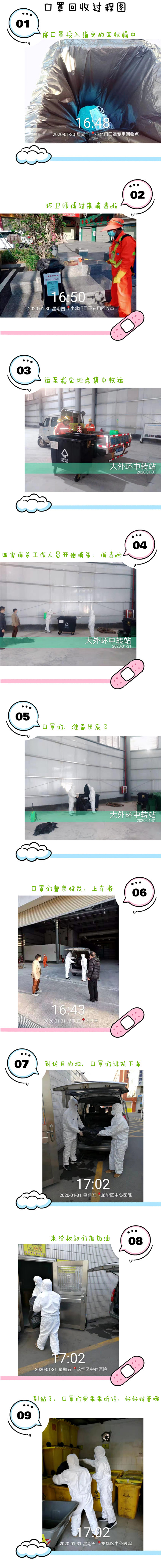 據(jù)了解,廢棄口罩每天由環(huán)衛(wèi)服務(wù)公司定時收集運送至街道回收站,再由消殺公司工作人員著防護服現(xiàn)場消毒后統(tǒng)一運送到龍華區(qū)中心醫(yī)院進(jìn)行統(tǒng)一專業(yè)化銷毀處理(詳細(xì)流程見下圖)。整個處理流程福城街道市政管理服務(wù)中心嚴(yán)格把控,每天安排專人進(jìn)行現(xiàn)場督促處理,堅決防止廢棄口罩因處理不當(dāng)引起的二次污染。