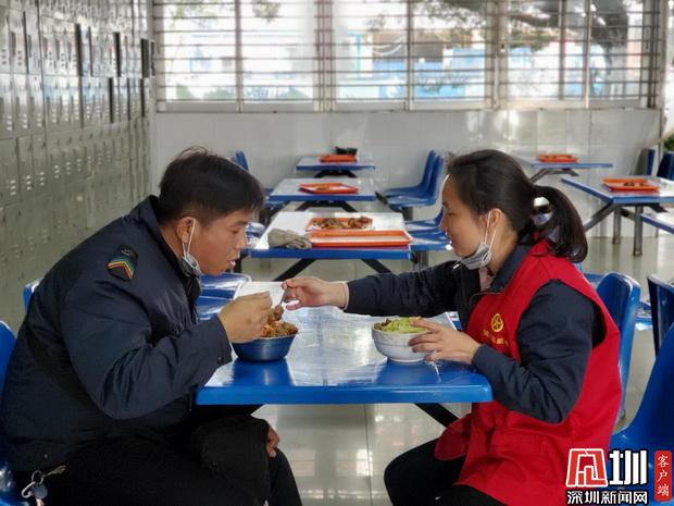 顏雁鳴和劉文菊在車(chē)隊(duì)食堂吃午飯