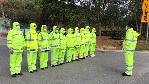 目前,燕羅街道各社區(qū)將庫存的防水材質(zhì)三防防護服全部送到一線,隊員們穿著時將袖口、脖口的鎖口扎緊,褲子選取大一碼的方便遮住腳面,同時佩戴護目鏡、口罩、一次性手套、一次性鞋套,對全身進行包裹。換班時,利用配置好的消毒水全面噴淋,或是在消毒桶里浸泡不少于20分鐘,并在太陽下掛起晾曬。